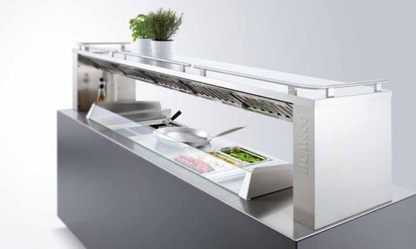 Ver cocinar platos al momento y delante del cliente, lo que se conoce como front cooking, es una de las grandes atracciones que ofrecen los nuevos buffets de hotel. La estación de cocina móvil de Blanco permite asar, cocer, cocinar a la parrilla, freír, mantener…