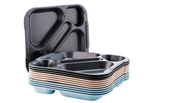 Araven presenta una bandeja de cinco compartimentos para la restauración social o colectiva, más ergonómica y con novedades como la posibilidad de tapar una bandeja con otra o los alojamientos para dejar los cubiertos.