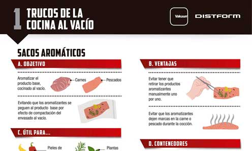 La firma Distform presenta esta práctica infografía en la que el chef Martín Lippo enseña a los cocineros un truco muy práctico para aromatizar productos que vayan a cocinarse al vacío.