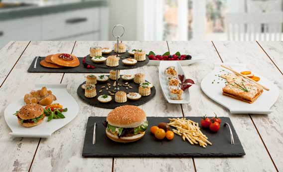 Arc Distribución Ibérica (ADI) amplía su marca de vajillas Quid con la colección Gastro Therapy: bandejas en porcelana y pizarra en diferentes tamaños que se pueden combinar entre sí, para servir de forma práctica y divertida tapas, sushi, raciones… Nuevos aires para el picoteo.