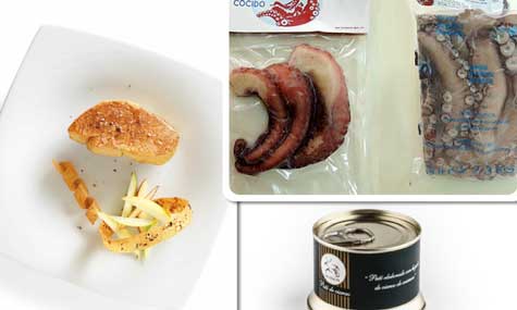 Delicatessen: pulpo congelado, escalope de foie gras, paté de ciervo
