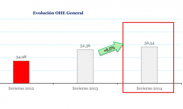 Optimismo en el sector hotelero ante la temporada invernal 2014-2015. El índice general del Observatorio de la Industria Hotelera experimenta un incremento del 8% con respecto a la temporada anterior, y aumenta el número de empresarios que consideran que esta temporada invernal mejorará su rentabilidad frente al…