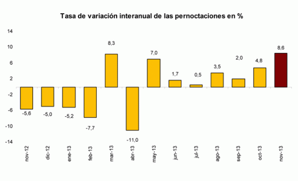 Las pernoctaciones en el conjunto de alojamientos turísticos colectivos españoles (hoteles, apartamentos, campings y alojamientos de turismo rural) registran un aumento del 8,2% en noviembre respecto al mismo mes del año anterior, revelan los últimos datos del INE. Y lo más importante: con una subida del turismo…
