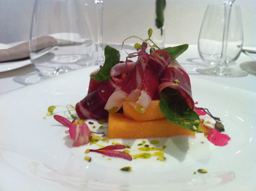 Crema agria de Oro Bailén con melón ibérico