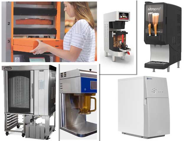 – Estación de recogida Axcess 2000.H, de Apex Supply Chain Technologies. Desarrollada conjuntamente con Little Caesars, se trata de la primera estación de recogida de pedidos de autoservicio. A medida que los pedidos están listos se colocan dentro del equipo, y una aplicación lo notifica a los clientes, que se evitan la cola. Sólo han de introducir su código en la estación y abren el compartimiento seguro que contiene su pedido, perfectamente caliente.