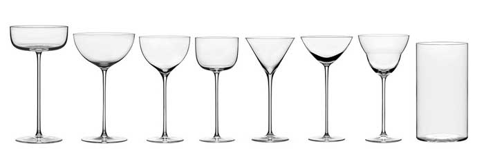 Esta gama Blow, de estética minimalista y sencilla, pero contemporánea y elegante al mismo tiempo, se compone ocho modelos de copas clásicas rediseñadas para potenciar al máximo desde los cócteles más clásicos como el Dry Martini hasta los más novedosos: