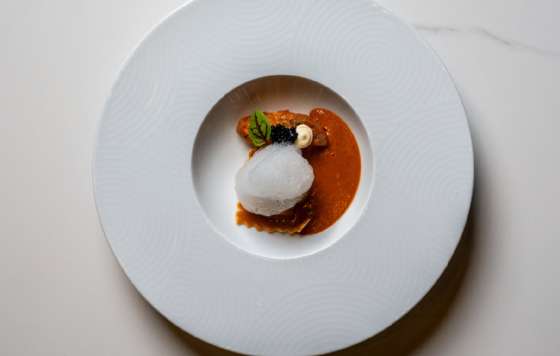 El chef practica también el zero waste, y las salsas de sabor profundo, los fondos y caldos que redondean muchas de sus propuestas nacen precisamente del reaprovechamiento. Combina técnicas de alta cocina con el guiso a fuego lento de toda la vida, siempre con un toque fresco y crujiente que remate el plato en forma de hoja, brote o flor. “Me gusta que mis platos tengan notas dulces, saladas, agrias o ácidas; al final las papilas están para que se lo pase bien la gente, no para que sean planas. Compensado, equilibrado y sin miedo a darle caña».